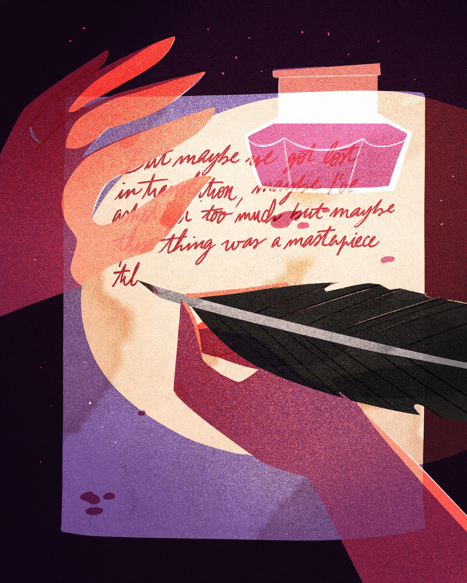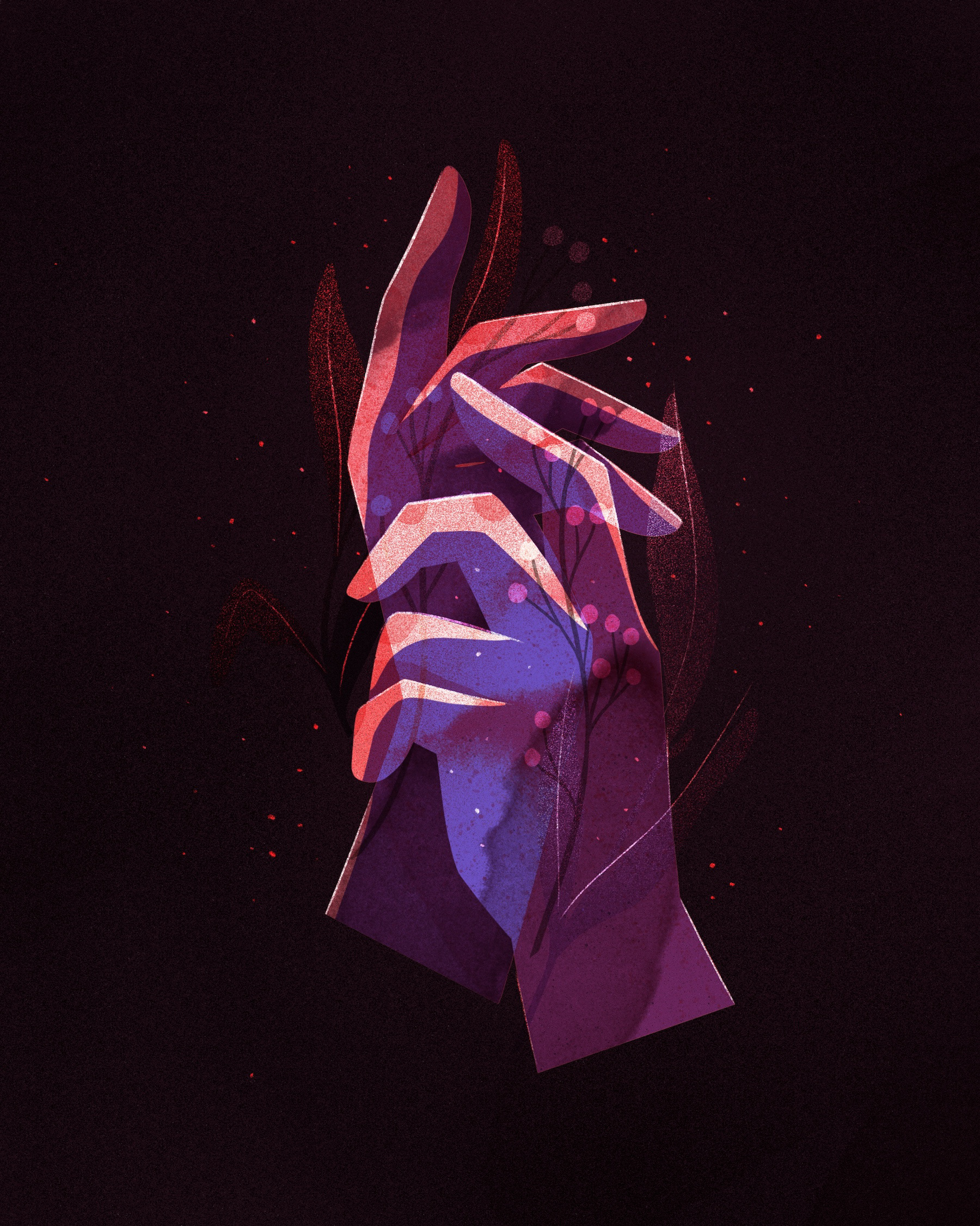 Once again I worked on making a color palette beforehand and I absolutely loved using all of these dark shades while playing with lights and shadows.